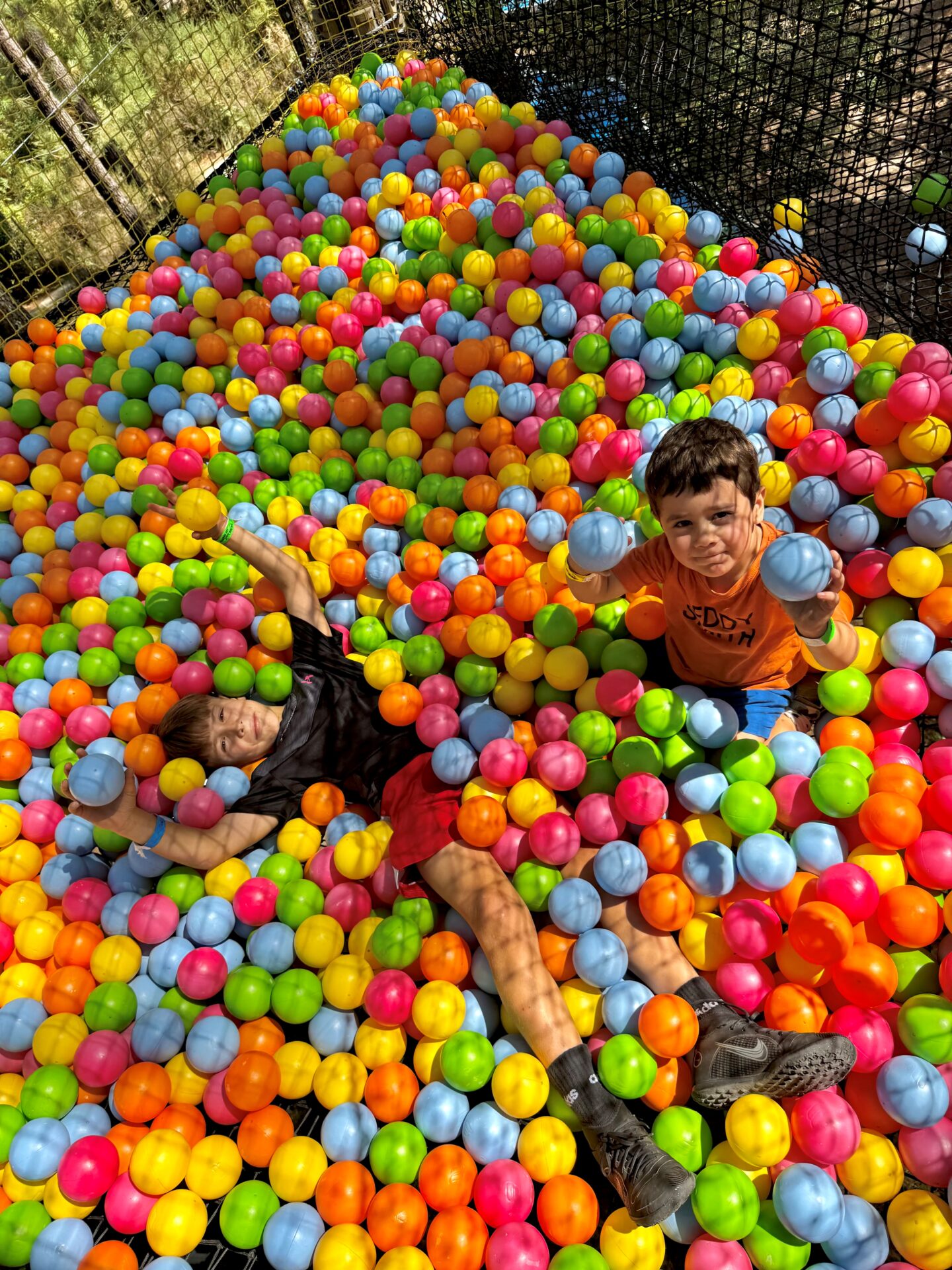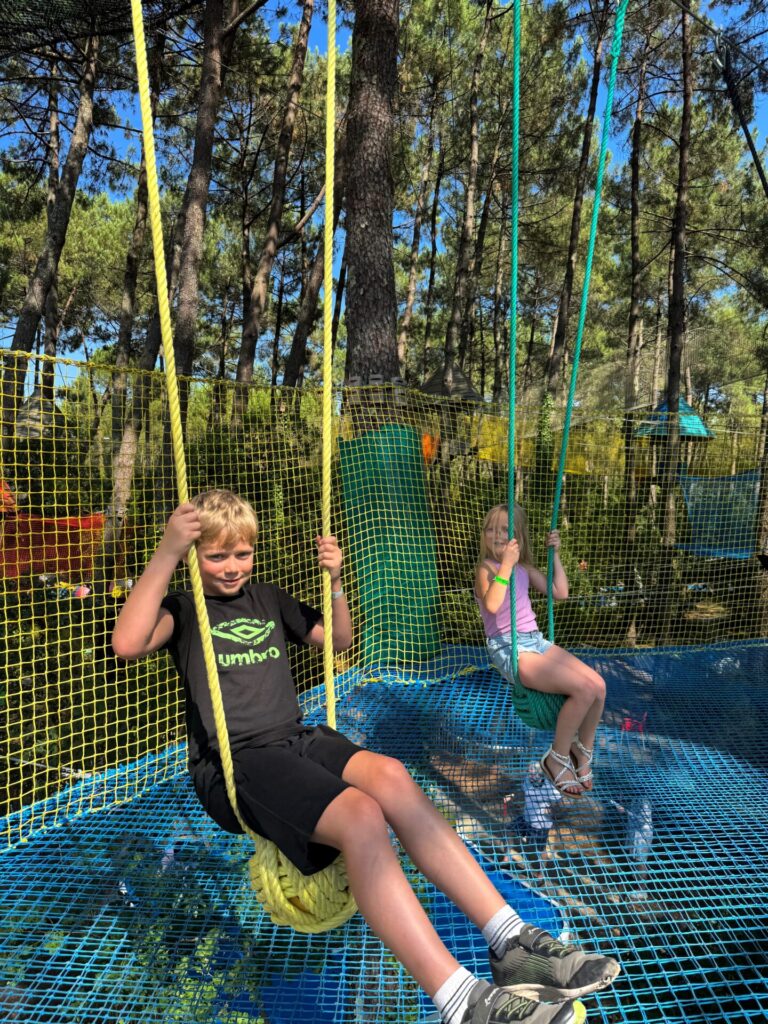 Activité de découverte où il faut grimper, se faufiler, de plus en plus haut, à travers des filets qui relient des cabanes avec jeux musicaux et grandes cages à ballons.( Hauteur max 16m.).